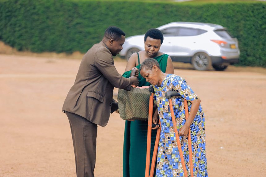 Ndayizigiye Charles (Karoli) w’imyaka 70, ari kwivuza imvune. Yavuze ko uyu munsi bawakiriye neza nk’uwo kubazirikana, kubasengera no kubasabira ngo bazakire.